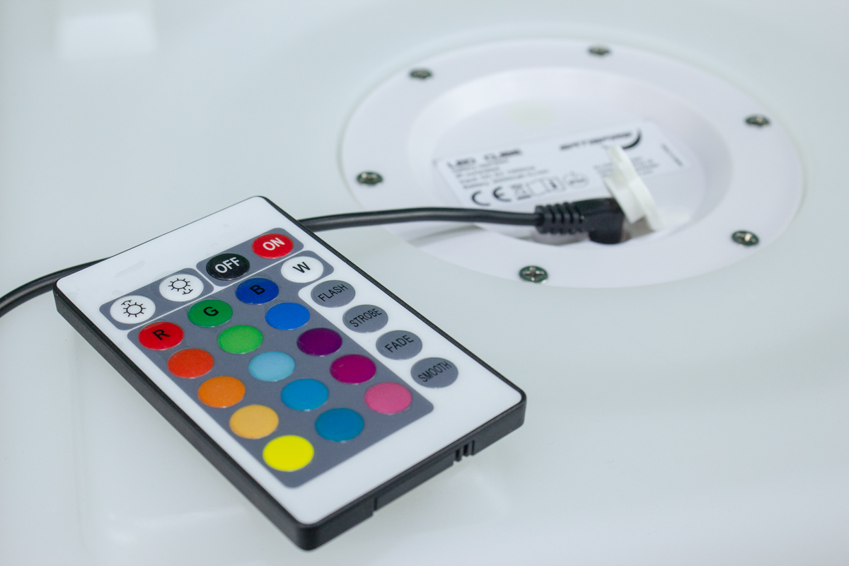 Die Steuerung der Farben machst Du über die mitgelieferte IR-Fernbedienung. Du hast die Wahl zwischen festen Farben, Mischfarben, Farbwechsler oder Programmen. Zudem kannst Du die Helligkeit über die Fernbedienung einstellen.