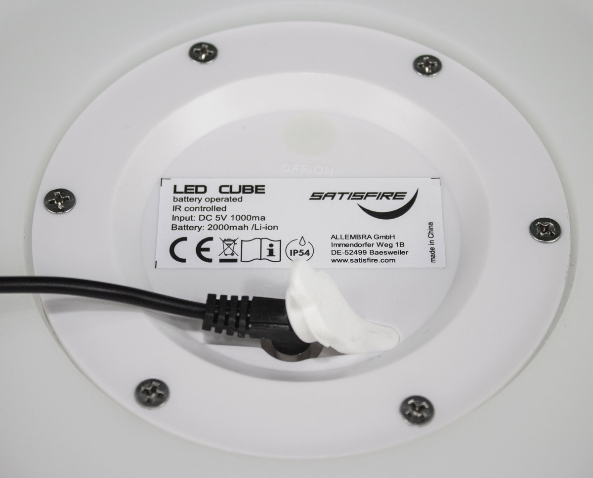 Das Aufladen geschieht über das mitgelieferte Netzteil. Einfach am Boden einstecken und aufladen. Danach ist dein COLOR CUBE wieder bereit für den nächsten Einsatz.