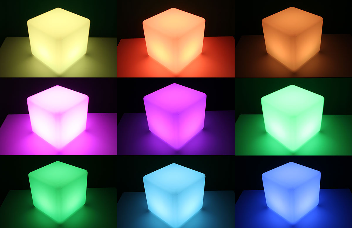 Den COLOR CUBE gibt es in den Größen 30cm, 40cm und 50cm.